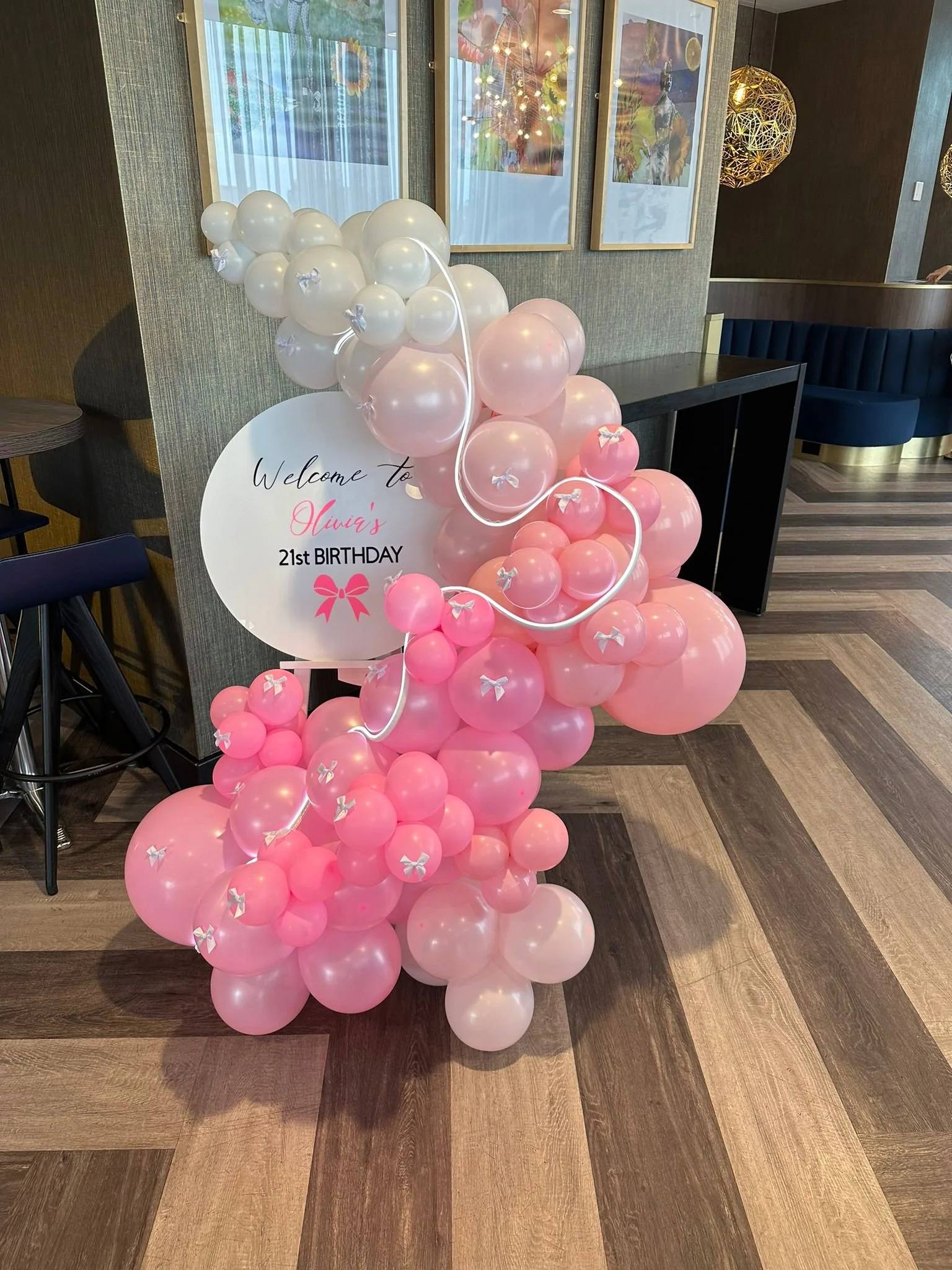 Balloon arch/stands both sides of wall